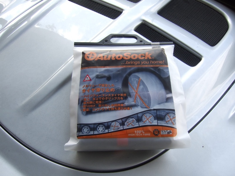 装着方法は簡単で、単にタイヤに被せれば良いだけなのだが、タイヤとフェンダーのクリアランスが小さい為、手が裏側まで回らないので、少し苦労した。それでも、チェーンを装着する面倒を考えれば、画期的な手軽さだ。
