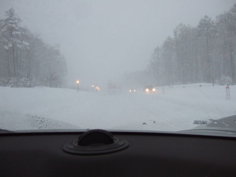案の上、高速道路上で猛吹雪に遭う。
