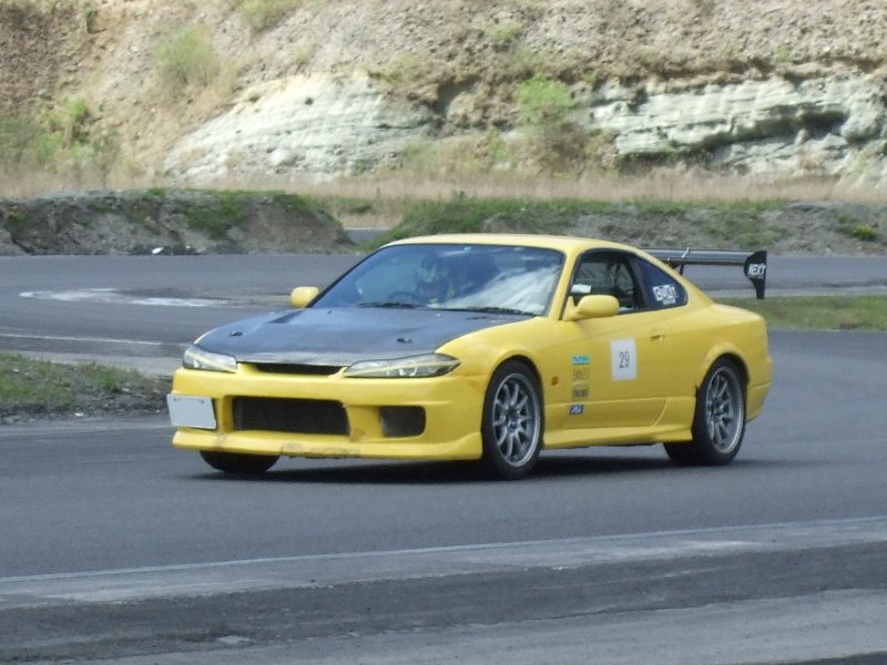 まずはTera氏の走り。この時は車高の設定で苦しんでいて、大分アンダーが強いと言っていた。この後、思い切って20mmぐらい車高を下げて、大分改善した模様。ロワアームは見事に逆ハの字らしいが。