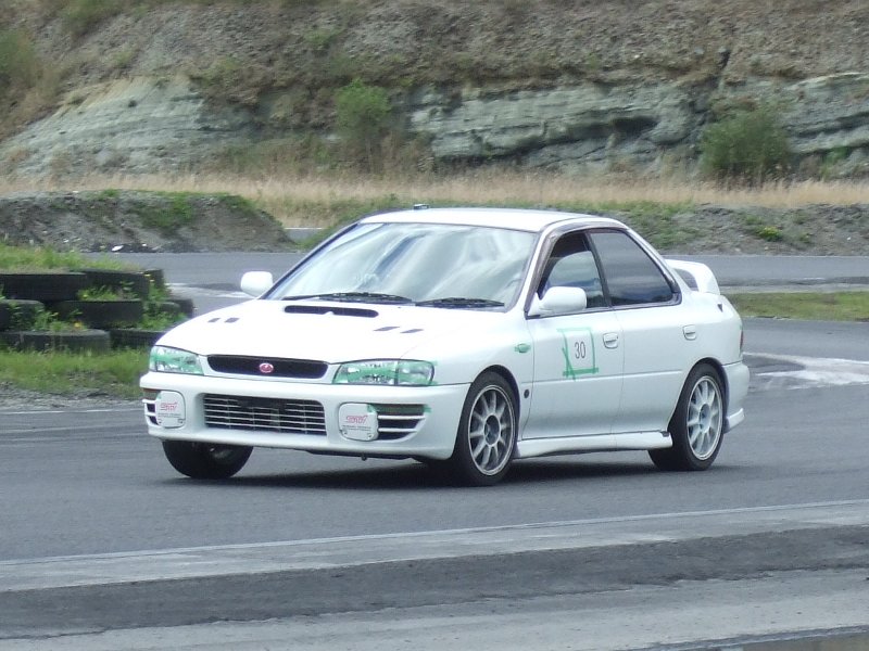続いて、いちご10号氏の走り。助手席も乗せてもらったが、トルクが急激に出すぎ。Sタイヤを履いているのが嘘のように滑り出す。でも、踏みすぎさえ気をつければ、トラクションはかなりいい感じ。当日のトップタイムを記録。